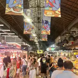 Since the market is busiest from morning to noon, it's recommended to visit in the morning to avoid the crowds and enjoy the freshest produce. Lunchtime is also a great time to dine directly at the market and experience authentic Spanish tapas culture.