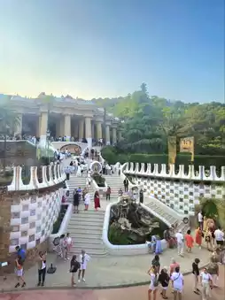 The first thing that greets you is the park's iconic symbol, the Lizard Fountain (El Drac). This sculpture, made from pieced together ceramic pieces, looks alive with vibrant colors, drawing countless travelers to stop and take photos. The stairs surrounding the fountain are also designed to flow in a curved manner, making them more like a work of art than a building.🌴