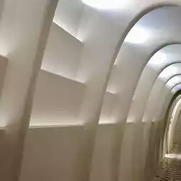The interior is designed to efficiently capture natural light and breezes. There are plenty of attractions, including a patio with a beautiful blue gradation that deepens as it rises, a mushroom-shaped fireplace, a loft with continuous arches, a mysterious rooftop chimney, and a backyard with beautiful tile decorations, all of which are more modest than the front facade. 🔍