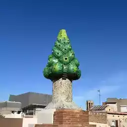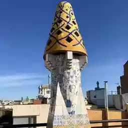And on the rooftop, there are rows of chimneys decorated with colorful mosaic tiles, giving a glimpse into his later architecture. 🔍