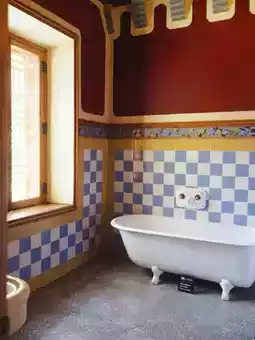 Although this was Gaudí's first major project, his exceptional architectural talent is evident both inside and out. 🥰 The stunning indoor terrace! They even have a fountain; sitting on it and listening to the trickling water is incredibly chill! The water actually comes from stored rainwater. 💗