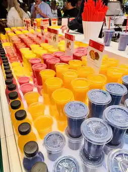 Don’t sleep on the fresh fruit juices! They’re chilling in ice in every shade imaginable — tropical mango, epic berry mixes, zesty orange — grab one to cool down after wandering Las Ramblas.🥭🍓🍊 And trust me, the fresh fruit here? It’s so bright and juicy it’ll make your pics straight-up pop! 📸✨