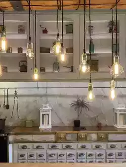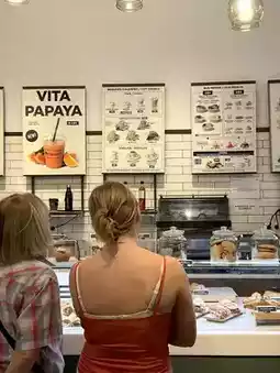 We stopped by #Faborit for a light lunch! They serve light salads, but you have to pass a certain "Casa" to get inside. 👀 The kitchen interior and terrace seating are nice, so if you're looking for a light meal, this is a great place. Haha. Seems like a local favorite. I ordered a salmon wrap and a papaya juice. And the fun part was the oil bar! Spain is famous for its olive oil, and there are so many different types (plus salt). Haha.