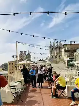 There's a #rooftopcafe on the rooftop. Haha. Since the sun is hot, everyone seems to be ordering drinks and relaxing under the parasols. Since it's on the rooftop, you can get a close look at the rooftop decorations on top of Casa Batlló. They're cute, almost like #toys.