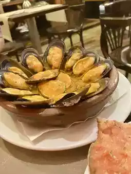 Because it's located close to the sea, the mussels and shrimp ajillo were also delicious.🦐