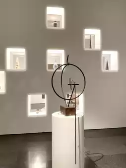 Some installations take up the entire space, making it nearly impossible to pass through. Others feature ceramics placed in square windows haphazardly cut into the walls, along with modern pieces that emphasize the beauty of lines.