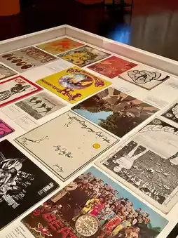 Photo collages, conceptual art, works with political messages, the famous Andy Warhol piece, various Beatles album covers, drawings... you can see a wide range of art.