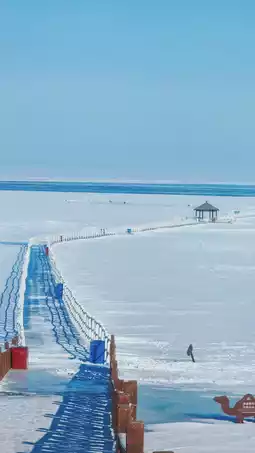 2. In addition to skiing, you can enjoy the beautiful lake view and distant snow-capped mountains at Barkol Lake. The scenery here is perfect for taking photos.