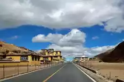 Between Zuogong and Bangda, the G318 has gentle slopes, mostly running alongside the Yuqu River. The highway passes through several Tibetan villages and occasionally encounters freely roaming yaks. Busy trucks come and go on the Sichuan-Tibet Highway, and the road conditions vary. You'll also see speeding motorcyclists whizzing by, as well as long-distance travelers on foot, some even pushing carts. Extra caution is required while driving, paying attention to pedestrians, yaks, speeding motorcycles, and oncoming trucks.