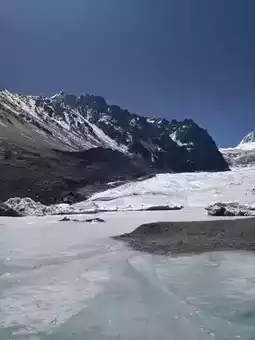 In mid-October, the ice on the glacier is not very thick. It should be more beautiful in 10 days 🤩. For ecological protection, you can now get close to the ice surface but cannot climb on the ice or the snow mountain 🏔️.