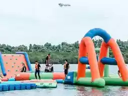 Spend your day enjoying the pristine white-sand beach, splash in the turquoise waters and indulge in a slew of water activities, from going on banana boat rides with your friends to challenging each other on their giant inflatable obstacle course!