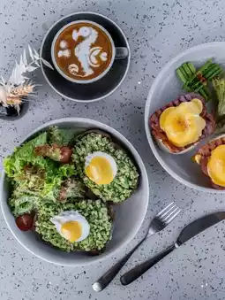 Western-style brunch – Eggs Benedict, Chicken Waffles, Pancakes, Avocado Toast