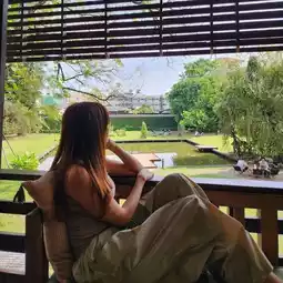 But in May, the weather is both hot and rainy. The food is delicious, the staff is cheerful, the shop and the outside area are very beautiful, the nature is very healing. I recommend sitting indoors and then taking pictures outdoors.