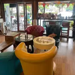 It's got this relaxing vibe. I think it might have something to do with the fact that they have a nice location right next to park with lots of greeney. The seats are arranged in a chic way. There is a corner to sit and relax, take pictures, and there are seats. Overall, good spot for hangouts