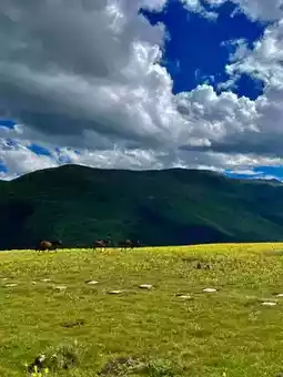 Indeed, the most beautiful places are free—this one is absolutely breathtaking. When I visited last year, I couldn’t bear to leave even after returning. Known as the "back garden of Western Sichuan," it truly lives up to its reputation. Imagine wandering through endless flower fields, admiring sunset-lit snow-capped mountains, soaking in hot springs at dusk, and listening to the gentle breeze whisper past your ears—who can resist such magic?
