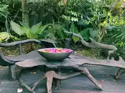Welcome to the serene infinity pool at the Healing Sanctuary, located next to the Spa and Aqua Bar. This tranquil oasis is surrounded by lush greenery, creating an enchanting atmosphere that feels like a scene from a fairy tale.