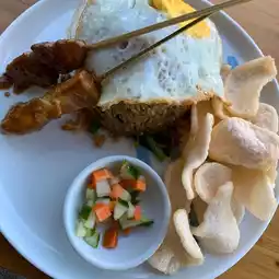 The fast food is Javanese and all dishes seem rather sweet. The restaurant is absolutely gorgeous .It's a bit like an art gallery with rustic tropical hard wood furniture and a small back yard garden. They have variety of indonesian. Price is normal and at par with local eateries.