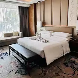 Batam Marriott Hotel Harbour Bay, located in Batu Ampar, Batam Island, Indonesia, offers a 5-star experience with stunning views of Harbour Bay. The hotel features spacious, well-appointed rooms with plush bedding, rainfall showers, and modern amenities like free Wi-Fi. Guests can enjoy dining at chic restaurants, rooftop lounges, and the Goji Kitchen & Bar, which serves international and local dishes.