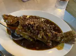 The sea bass was fried to a perfect crisp with tender meat beneath the golden skin, and the savory soy sauce brought everything together. The black pepper beef had a strong, punchy kick that paired well with rice, while the drunken prawns were fresh and fragrant with Chinese wine.