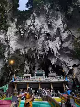 The Malaysian sun beat down with a friendly warmth as I approached the iconic site. Even from a distance, the sheer scale of the 📍golden Lord Murugan statue (1st picture) was captivating, a beacon announcing the entrance to this natural and spiritual wonder. Its gleaming spear pointed skyward, a silent invitation to ascend.