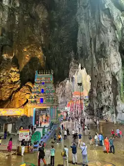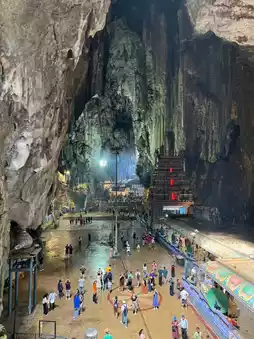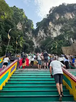 I visited the mystical sacred site "Batu Caves" located on the outskirts of Kuala Lumpur! The entrance is stunning, greeted by a 42.7-meter-tall golden statue of Lord Murugan. The 272 colorful steps to climb are steeper than they look, and with each step, my heartbeat quickened, giving me a great sense of accomplishment!