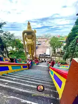 Batu Caves is a must-visit and must-check-in spot in Kuala Lumpur for worship, blessings, and amazing photo opportunities. It is a Hindu religious site located in a magnificent natural limestone cave, distinguished by a huge golden statue of the deity Murugan standing tall at the entrance, along with a 272-step rainbow-colored staircase leading up to the cave mouth. This is a symbol that everyone must take a photo with. When you reach the top, you will find the large main cave called Cathedral Cave. Inside, the cave is spacious and grand, with a very high ceiling. Sunlight shines down on the deity and various sacred objects enshrined there, creating a holy and reverent atmosphere. You can walk around and pay respects or ask for blessings from the different deities at your convenience. Additionally, there are other caves to explore, such as the Art Gallery Cave and Museum Cave, which display statues and paintings that tell stories from Hindu scriptures. Another charm of Batu Caves is encountering the large troop of macaque monkeys living around the stairs and caves. They are friendly but quite mischievous, so don’t forget to be careful with your valuables. To get to Batu Caves, you can take the KTM Komuter train on the Port Klang Line from KL Sentral station and get off at Batu Caves station. It doesn’t take long. Whether you are a devotee of Hinduism or an admirer of beautiful architecture, this place is highly recommended.