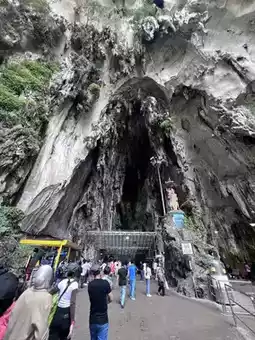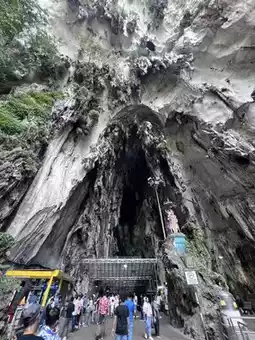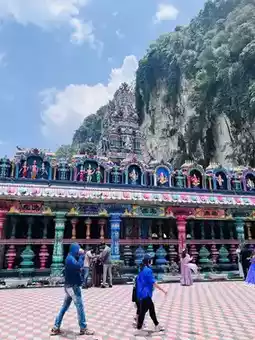 Batu Caves, located north of Kuala Lumpur, is a limestone hill with natural caves. Hindus built a temple within the natural water curtain at the top, making it a renowned Hindu shrine.