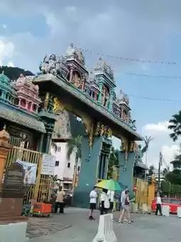 As soon as we arrived, the most amazing thing we saw was the gleaming golden Lord Murugan (Lord Murugan), standing 42.7 meters tall 🪙 majestically in front of us. It's the tallest statue of Lord Murugan in the world. 🌍 Just standing there and paying our respects, we felt the power of devotion and grandeur of this place. 🙏