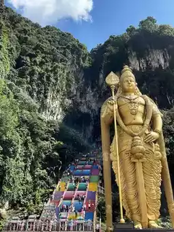 Prepare to climb through a rainbow into a celestial wonderland! Kuala Lumpur's iconic Batu Caves isn't just a religious site - it's a vibrant symphony of faith, nature and color that will elevate your senses and fill your camera roll with divine beauty!