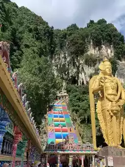 Climb the 272 colorful steps of Batu Caves and enter a world where Hindu devotion meets vibrant modern art! This isn’t just a temple – it’s a living canvas where every hue tells a story of faith, culture, and celebration.