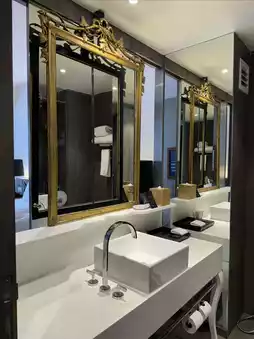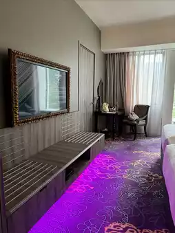 There's a bar in the lobby! There's also a lounge area and a shopping mall.