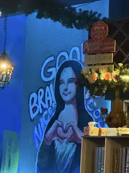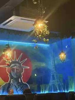 The ambience was great, warm lighting softly illuminates the space, with wagon wheels on the wall serving as eye-catching vintage décor 👍👍👍