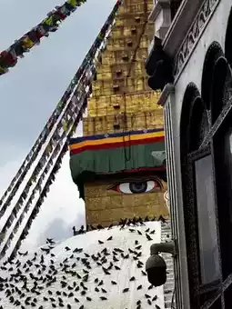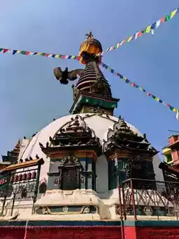 🐒 Swayambhunath Stupa: The golden stupa at Monkey Temple shines brightly. Climb to the top for panoramic views of Kathmandu.