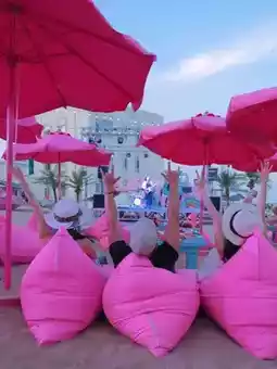 ✔️ Barbie Pink💕 parasols + sofas everywhere