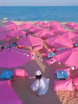 I declare! No need to go abroad! This pink beach bar in Qinhuangdao has already taken over my summer social media feed!