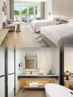 The Sheraton Resort boasts unique thematic features. Its interior decor features elegant, light tones complemented by marine elements, creating a relaxed and pleasant atmosphere. The comfortable beds, spacious bathroom, and comprehensive modern amenities further enhance the experience.