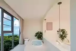 Taking a bath in the bathtub facing the floor-to-ceiling window is super healing~