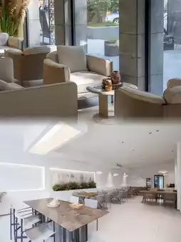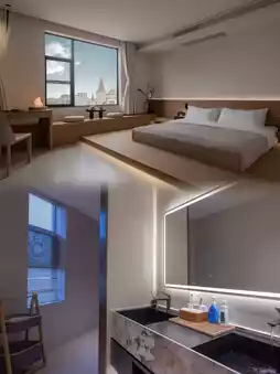 The building facade retains the original European-style framework of the villa area, yet incorporates oriental Zen aesthetics through raw concrete and natural wood elements. Sunlight filters through perforated brick walls, painting patterns in the corridor, while rough-textured pottery jars whisper "the poetry of imperfection."