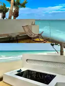 The room features a cliffside infinity pool—slide open the glass door, and the ocean is right there! Woken by waves at dawn, opening your eyes to sparkling turquoise waters.