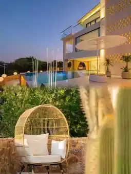 🔥 Relax by the pool at night, enjoying the sea breeze, BBQ skewers, and cold beer