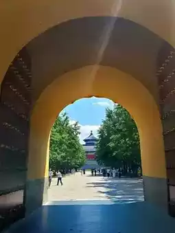 The Temple of Heaven is built with Chinese architecture, especially the Hall of Prayer for Good Harvests, which stands out with its impressive height of over 40 meters and its three-tiered structure, covered with beautiful dark blue tiles.
