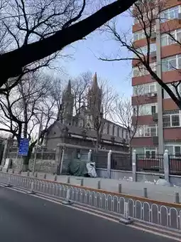 Continue walking west, and you will see a towering spire in the distance. It is a large church - St. Michael's Church, which was built in 1901 by a French missionary named Gaud. The church faces south and is built in the European Gothic style. The gray brick walls and three spire bell towers on the facade make it mysterious and solemn. The church is not open to the public. Across from the church is the former Belgian Embassy, which is now the Zijin Hotel.