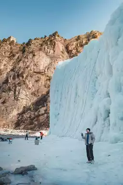 | A super large ice waterfall at the foot of the Great Wall.〰️