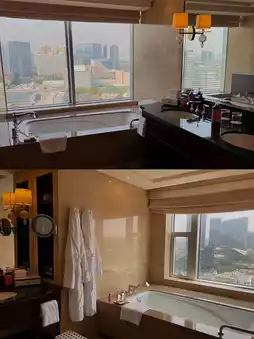 👭If you come to Beijing with your bestie, you must check in at the Four Seasons Hotel Beijing! I was amazed as soon as I entered the door, with gorgeous chandeliers, exquisite artworks, and a full sense of luxury. The room is spacious and bright, and the photos 📸 are super beautiful. The infinity pool and hot spring whirlpool are super beautiful at night. It is so pleasant to soak in the hot spring with your bestie and chat about gossip. By the way, the afternoon tea 🧁 in the lobby is also great. The three-tiered tea is exquisite and delicious. I took a lot of beautiful photos with my bestie, and they are so beautiful!