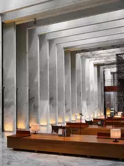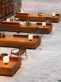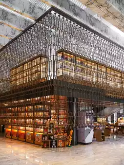 The newly built Daxing Airport is located on the extension of the central axis. The Mu Mian Hua Hotel, where I'm staying after landing, is located in the terminal building of Daxing Airport. Mu Mian Hua Hotel combines traditional Chinese aesthetics with modern design. It has a cultural and creative space of more than 2,000 square meters, with a wide variety of books, cultural and creative products, and accessories. There are also regular exhibitions in collaboration with artists. Traditional culture and modern art are intertwined here, creating a symphony of aesthetics.