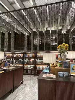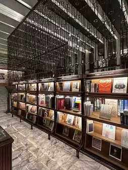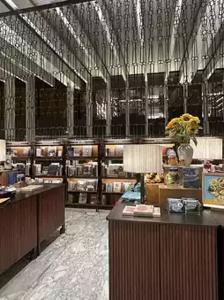 The bookstore's design is also very stylish. The luxurious interior and sophisticated furniture stand out, and unique items are thoughtfully placed alongside the books. There's a small coffee corner where you can enjoy a cup of tea while browsing through books, adding to the leisurely experience. Artworks displayed on the walls make the bookstore feel like a cultural space.