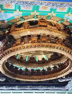🎭 Wood-carved Caissons: Classic designs of palace architecture, featuring meticulous carving and resplendent gold and jade.