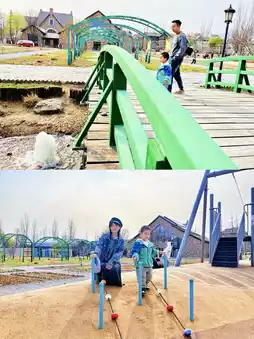 2. Free outdoor leisure park⛲️ and playground, more suitable for children to play, with slides, climbing nets, swings, sand pits, etc. There are several Monet-style green bridges beside the stream. It will be more beautiful after the flowers bloom and the trees turn green! It is surrounded by green plants and feels like a street park.