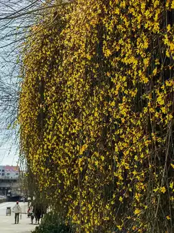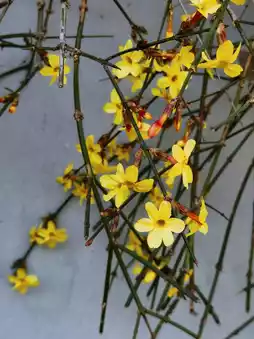 Winter jasmine can also be the star of the show. Here's a whole wall of cascading winter jasmine.