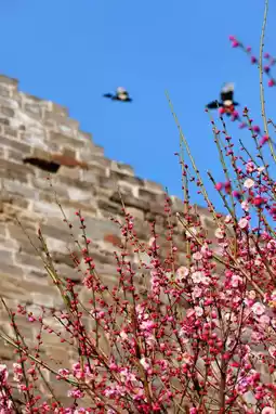 “Sparse shadows slant across the clear shallows, a subtle fragrance drifts in the moonlit dusk.” Ten days later, revisiting the Ming City Wall Ruins Park, thousands of white and red plum blossoms are in full bloom. Many tourists come to admire the plum blossoms and embrace the beauty of spring. The shadows of plum blossoms on the city walls evoke a sense of timelessness. The resilient plum blossoms against the weathered Ming City Wall create a romantic encounter between history and nature. The plum blossoms add a touch of vibrancy to the city wall, while the wall imbues the blossoms with a sense of historical significance.